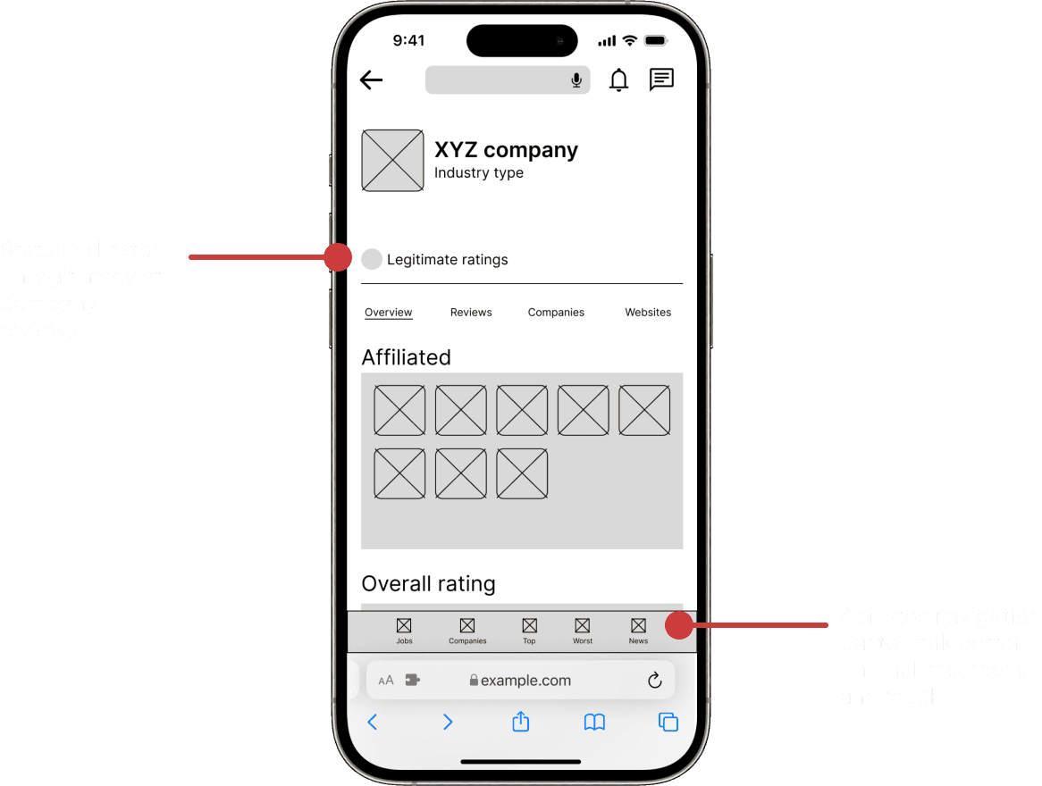 Digital Wireframes: Moving from paper to digital wireframes made it easy to understand how the redesign could help address user pain points and improve the user experience. Prioritizing visibility of company statistics on elements was a key part of my strategy.