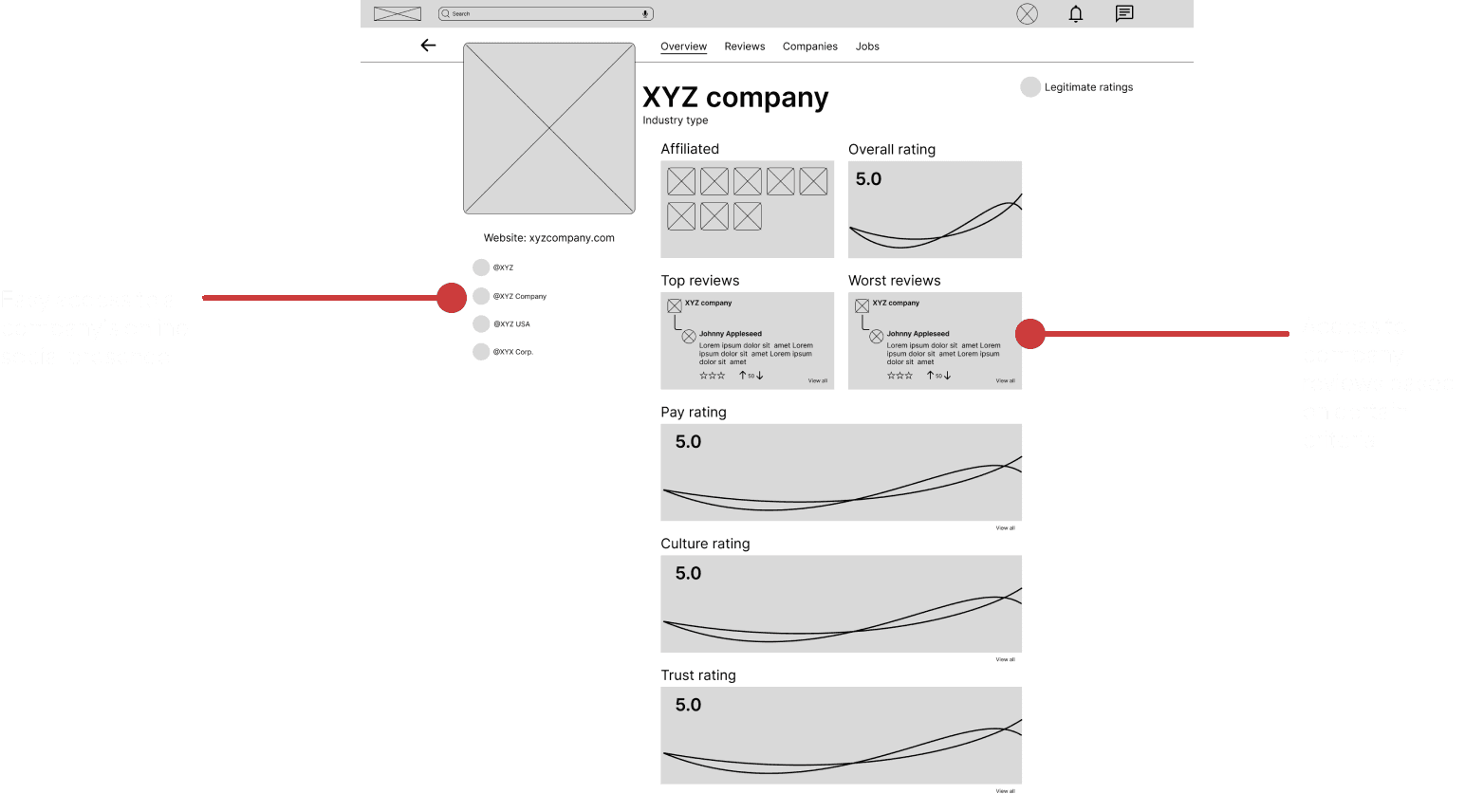 Design a job board site that provides transparency by providing specific insights on companies by different criteria.